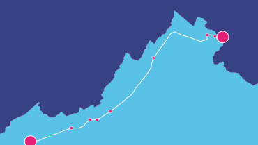 Our buses include roomy seating, a restroom, baggage storage, free Wi-Fi** and in-seat power outlets to make your trip fly by.